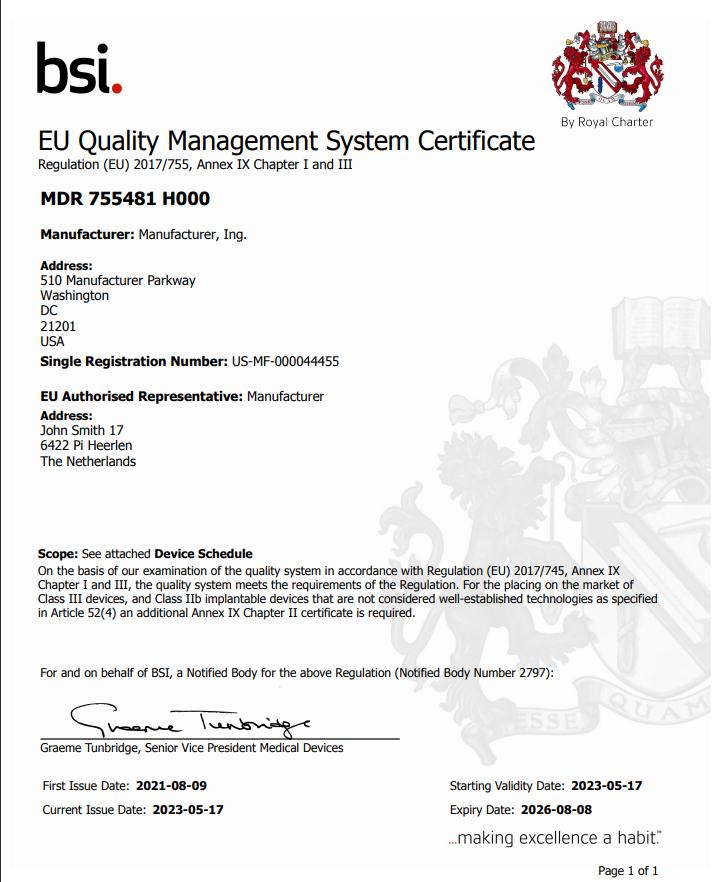 | Certificate of Registration | Declaration of Conformity | Power of Attorney |